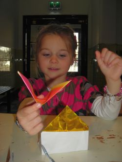 origamistappen nog eens na te gaan. Of samen het model te vouwen en
